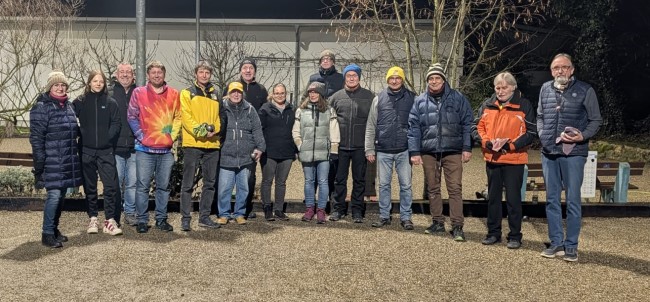 Und schon geht es wieder weiter mit der Vereinsmeisterschaft. Am ersten Sonntag im Januar trafen sich immerhin 6 hartgesottene Bouler um den ersten Vereinsmeister 2026 auszuspielen. Bei knackigen Temperaturen um den Gefrierpunkt und Schnee, wurde der Vereinsmeister Januar ausgemacht.